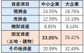 中小企業は、大企業と比較して不動産資産への依存度が高い傾向にあります。