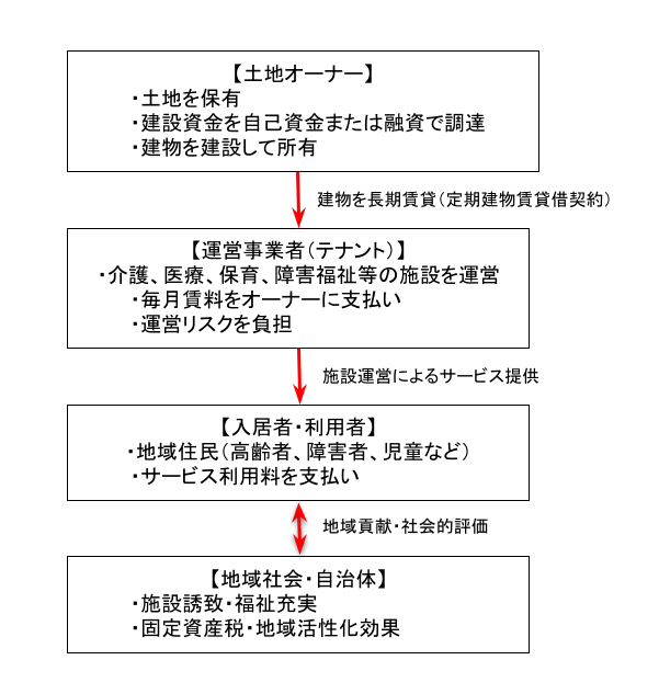 - 福祉・医療・保育等の運営事業者と長期賃貸借契約を締結