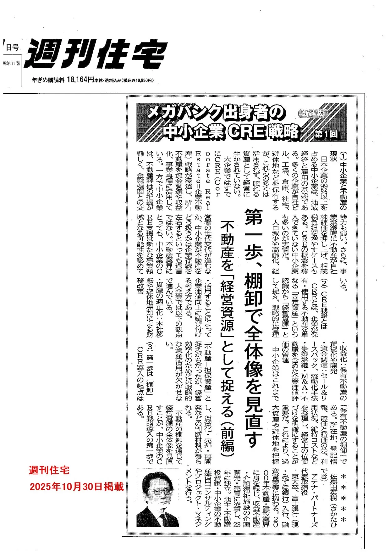 内容としては、中小企業の不動産を経営資源として活用する「CRE戦略」の実践方法を解説。遊休地の収益化や金融活用、承継対策を通じて企業価値を高める手法を紹介しています。
