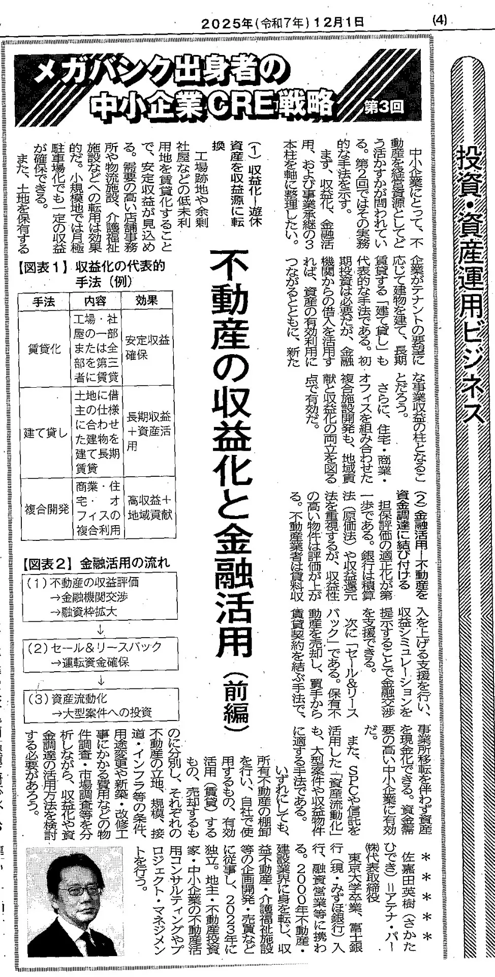 内容としては、中小企業の不動産を経営資源として活用する「CRE戦略」の実践方法を解説。遊休地の収益化や金融活用、承継対策を通じて企業価値を高める手法を紹介しています。